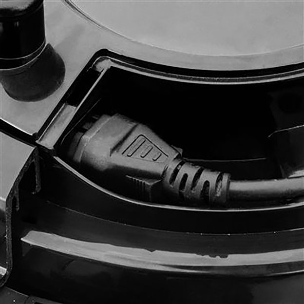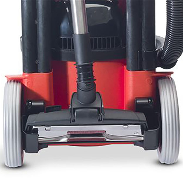 Trwała, estetyczna obudowa, prosty system zwijania kabla, zintegrowana kuweta na środki czystości, składana rączka typu walizkowego oraz duże kółka dla łatwego transportu. Urządzenie przystosowane do ciągłości pracy bez ograniczeń. Odkurzacz wyposażony w energooszczędną turbinę ssącą.