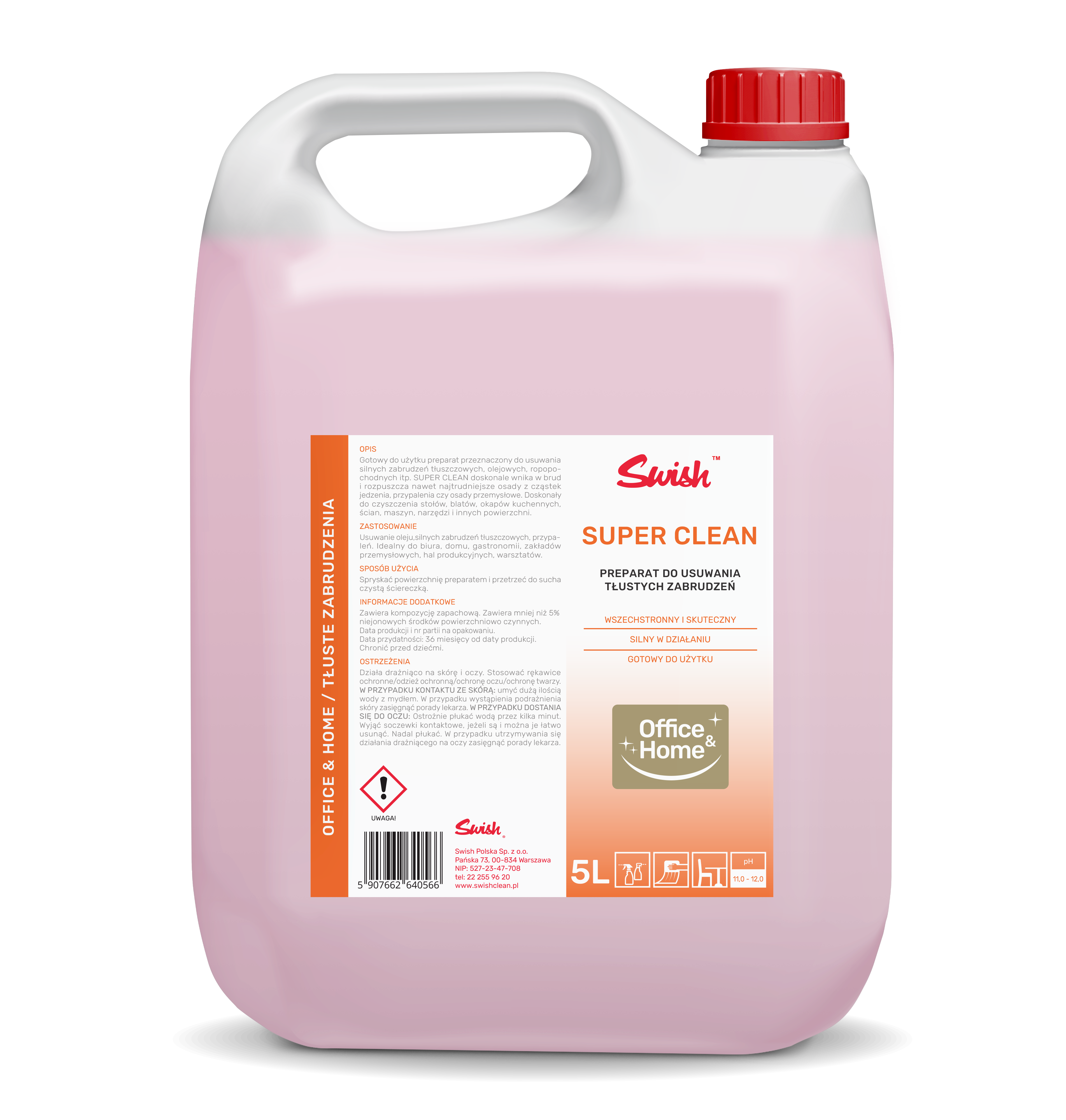 Jesteś tutaj: Home1 / Sklep2 / Profesjonalne środki czystości SWISH3 / Profesjonalne środki czystości dla hoteli i biur4 / Płyn do usuwania tłustych zabrudzeń Super Clean 5L